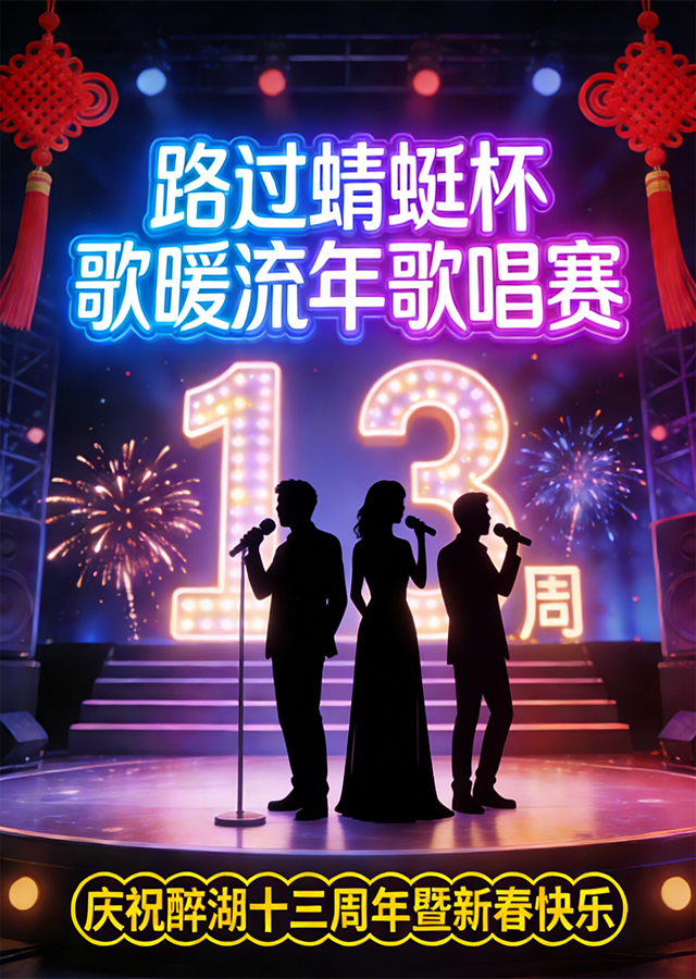 恰逢醉湖创建十三周年之际 唐门掌门路过蜻蜓,慷慨解囊、鼎力支持, 为醉湖侠客搭建以歌治愈,以声暖情的舞台 路过蜻蜓・歌暖流年歌唱赛, 就等一个敢唱敢嗨的你!